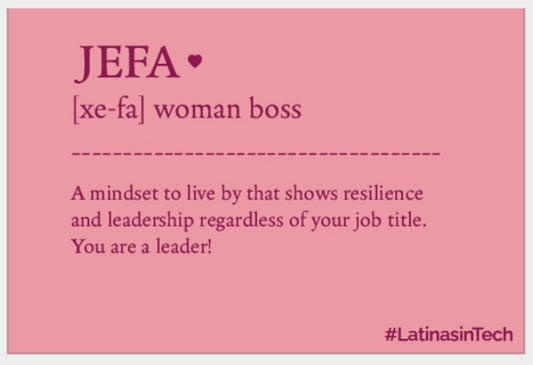 It's time to show the world the power of Latinas in tech! Wear your T-shirt with pride and join the movement, because you are that JEFA who is creating opportunities, claiming their seats at the table, and inspiring others.